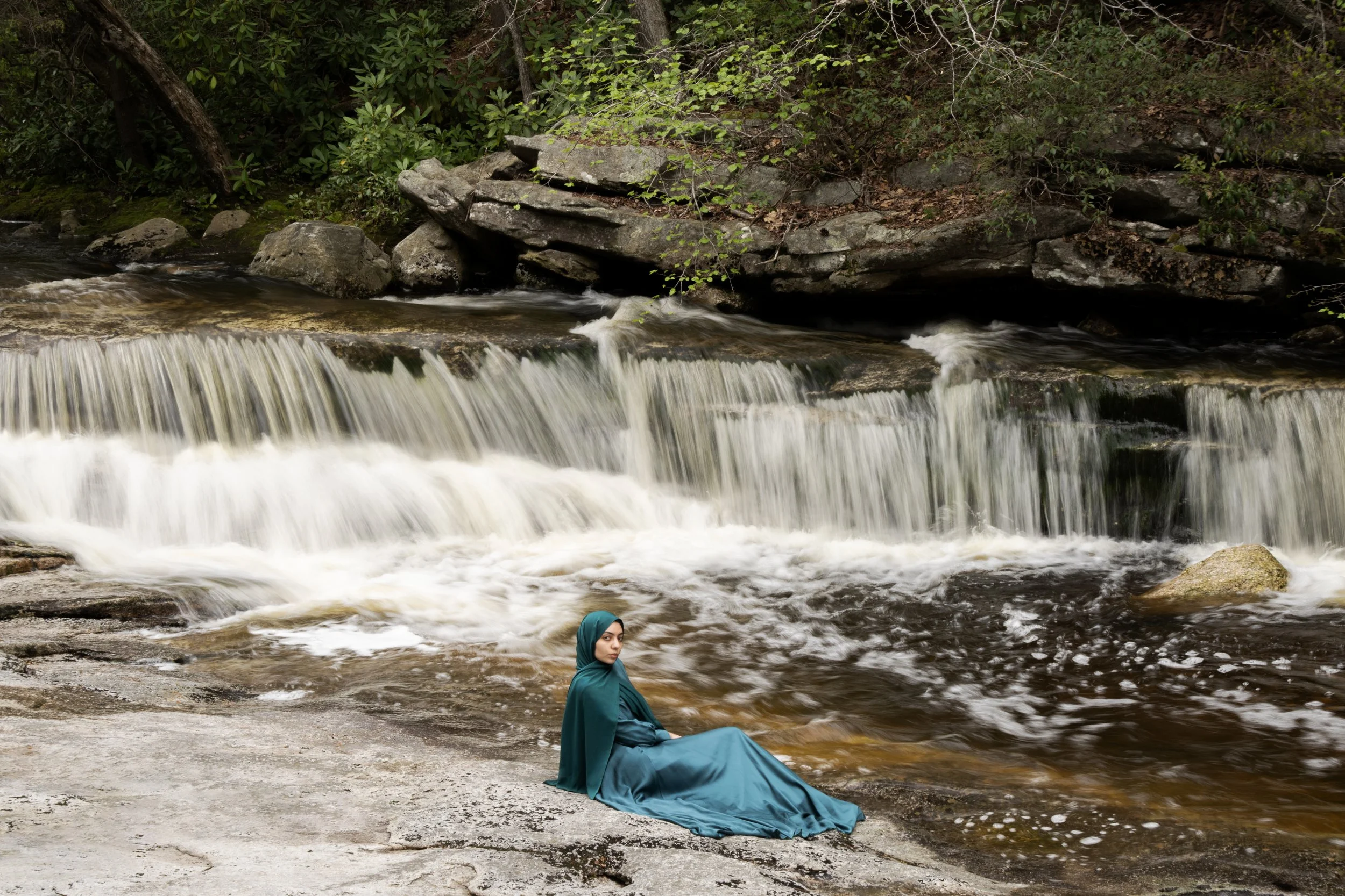 Saffron Tears is a series of photographic self-portraits that explores the beauty of the hijab and Iranian culture, using nature settings inspired by Persian poetry.